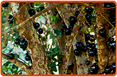 Schwarze, sehr aromatische Beeren, die im Geschmack an Blaubeeren